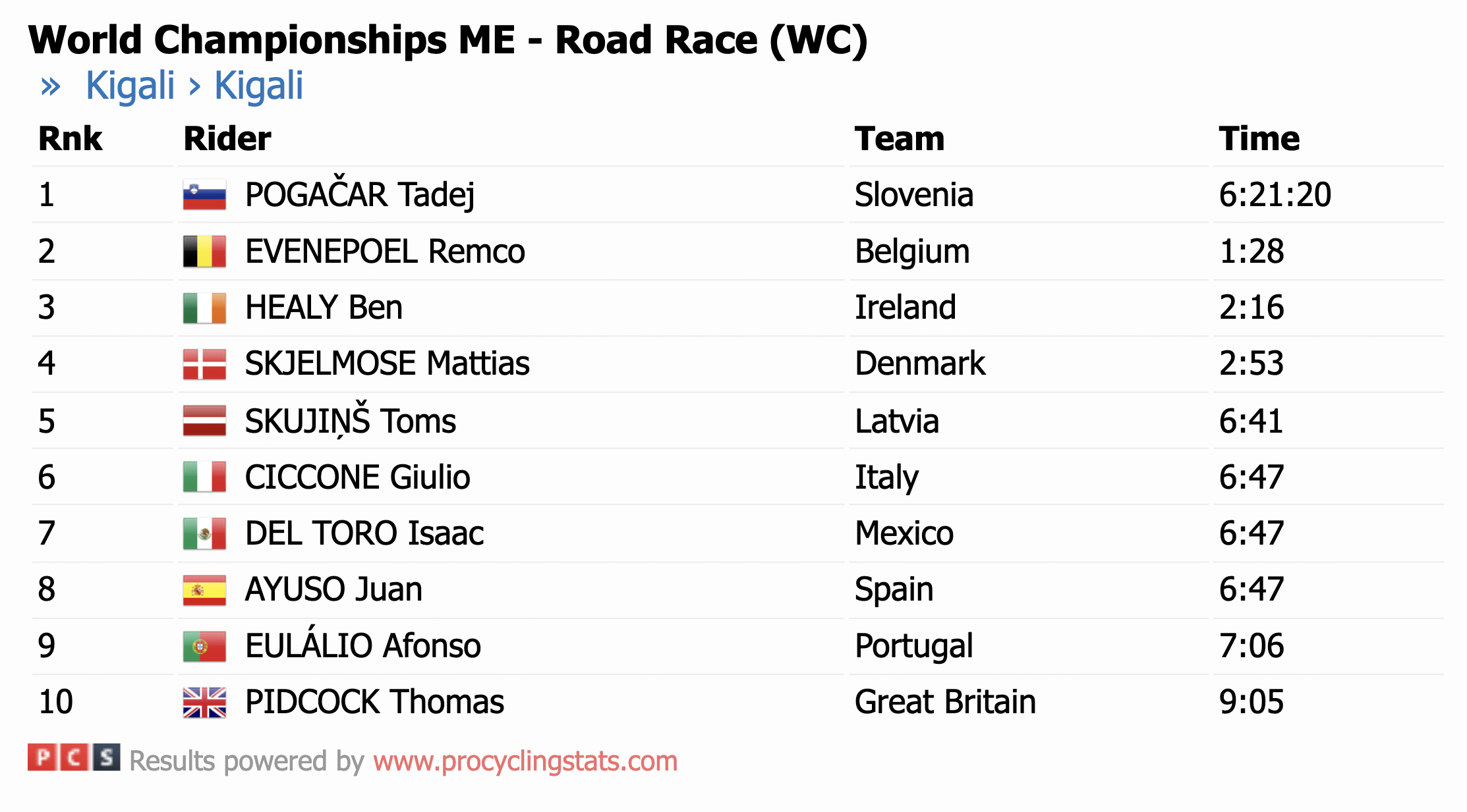MS Kigali : Výsledky Muži Elite