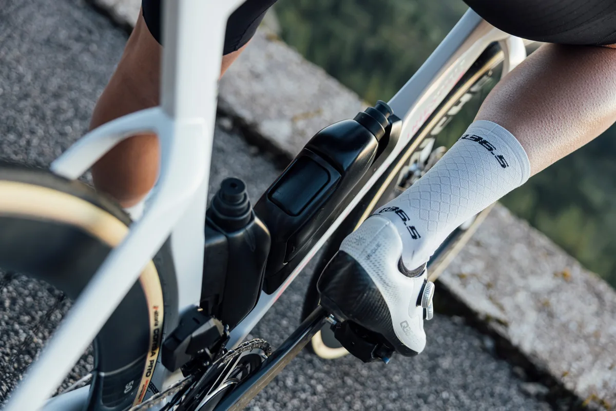 Velká část aero zisku pochází z nové profilace spodní rámové trubky, která lépe zakrývá aeroláhve a košíky navržené společně se značkou Elite. Podobně jako u současných top aero kol platí, že kolo je rychlejší s lahvemi než bez nich. Aero systém nabízí celkovou kapacitu 1100 ml a je kompatibilní i s klasickými kulatými bidony.