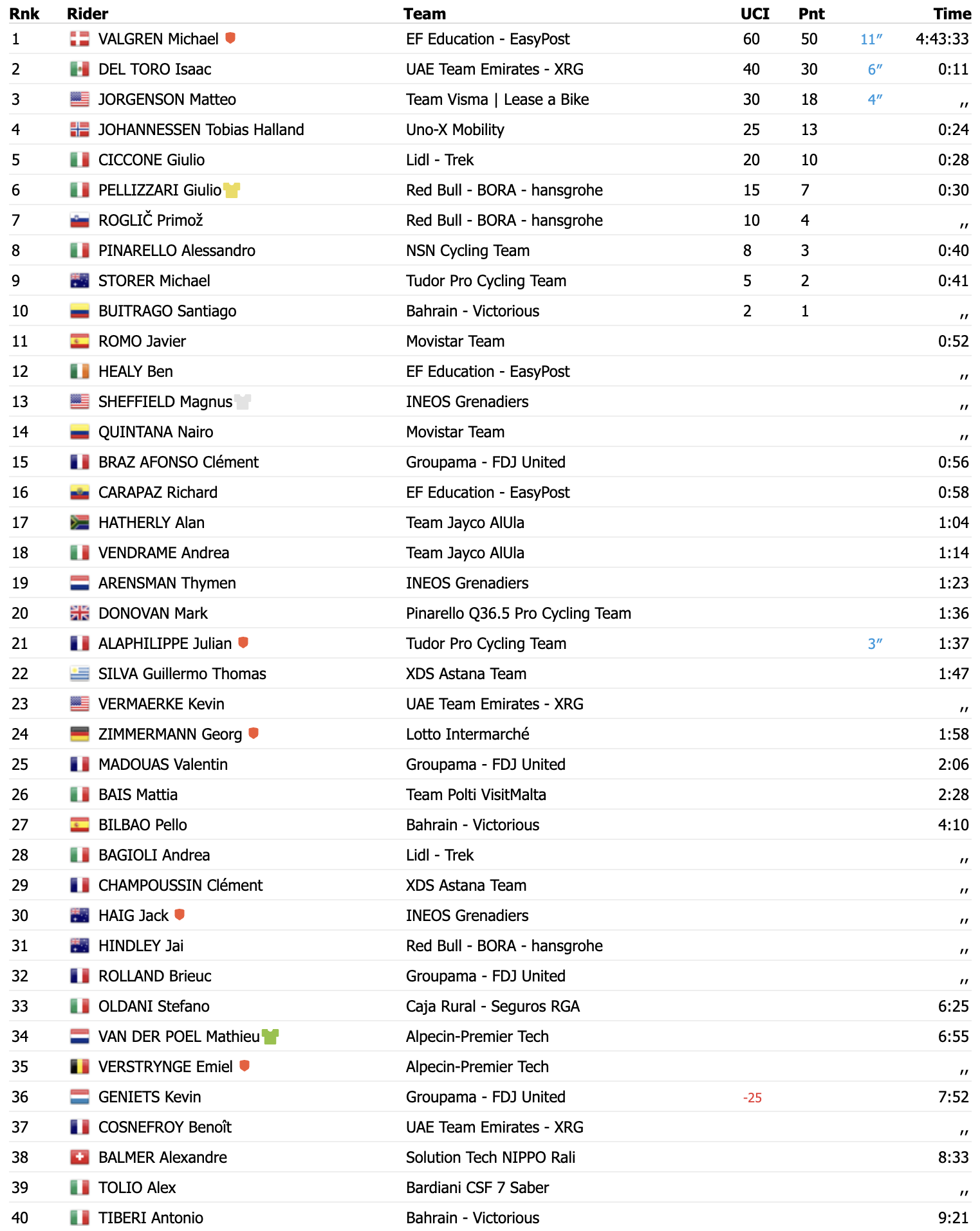 Tirreno-Adriatico 2026: Výsledky 5. etapy