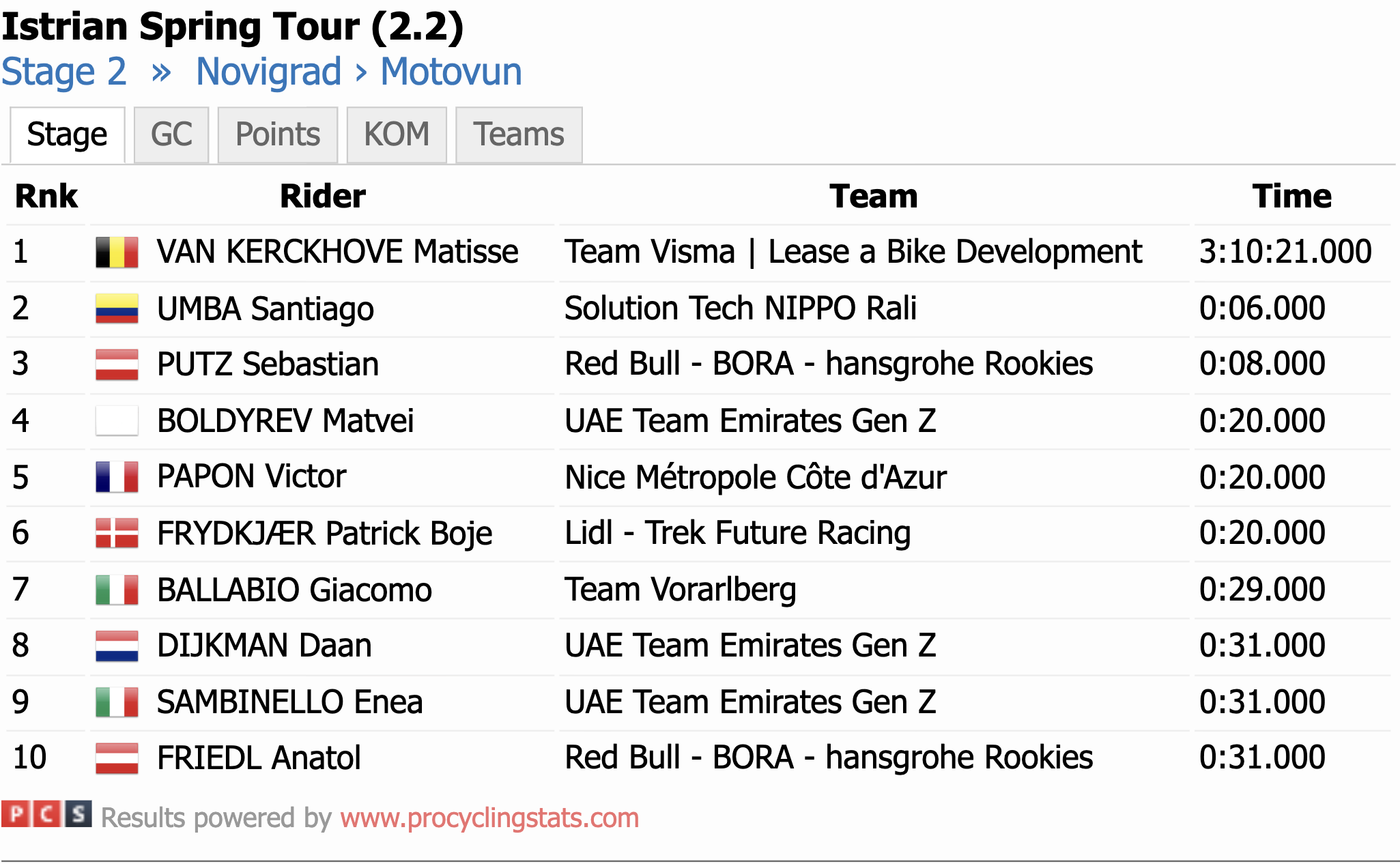 Výsledky 2. etapy Istrian Spring Tour